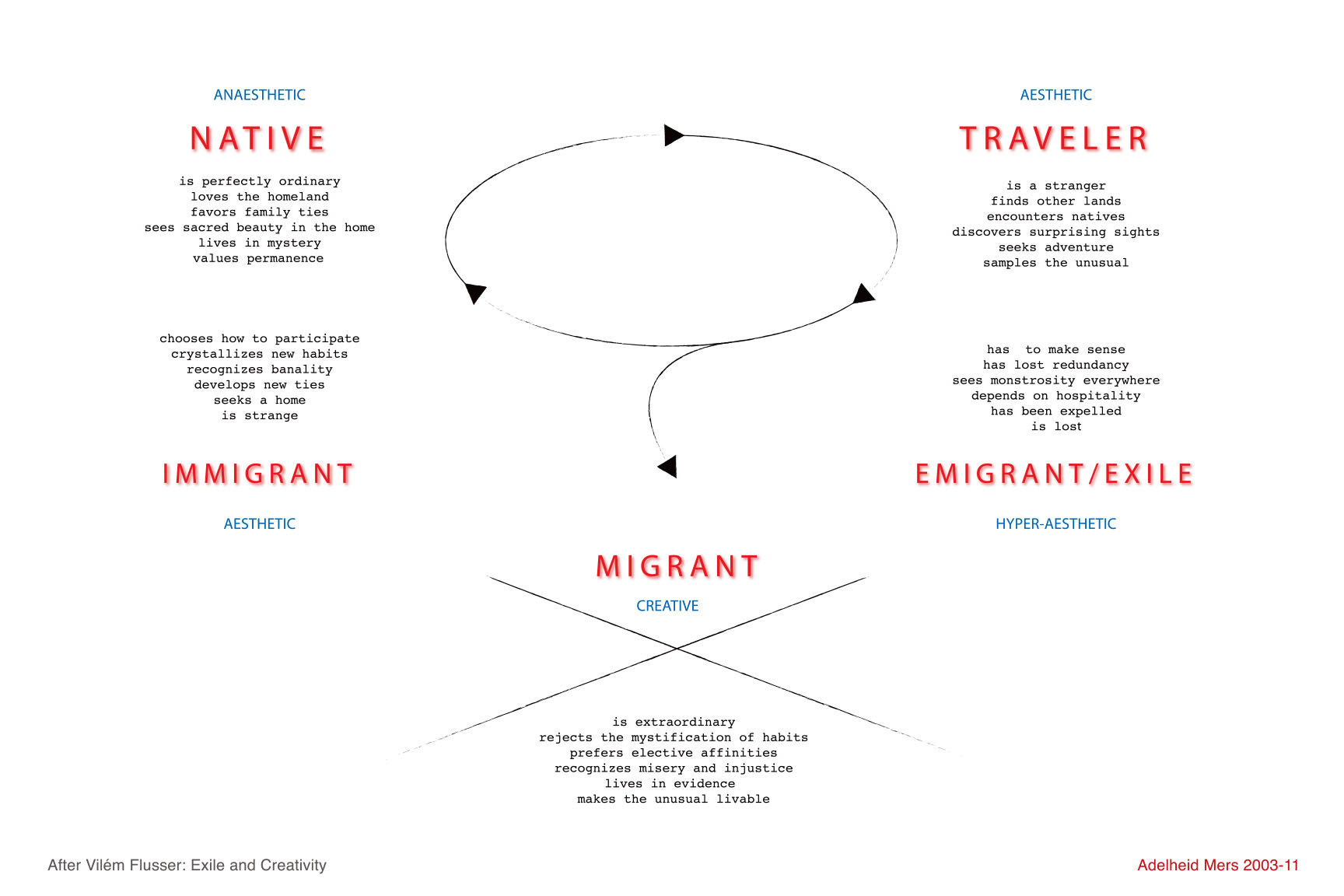 A visual artist, Kirsten arranged a stage with two boards, Flusser’s Exile and Creativity and The Braid, moving from left to right. Kirsten’s most recent art project was to engage American and recently immigrated youth in a summer camp around the meanings of home. She considered the impact it had on the youth to be tacitly aware of her European origin. Situating the growth of this particular project in The Braid, she noted the primacy of her artistic intent that can come to fruition with the valued support of curators’ trust, and is her guidance in negotiations with institutional representatives to access and shape appropriate settings.Screenshot 2016-07-14 23.16.01