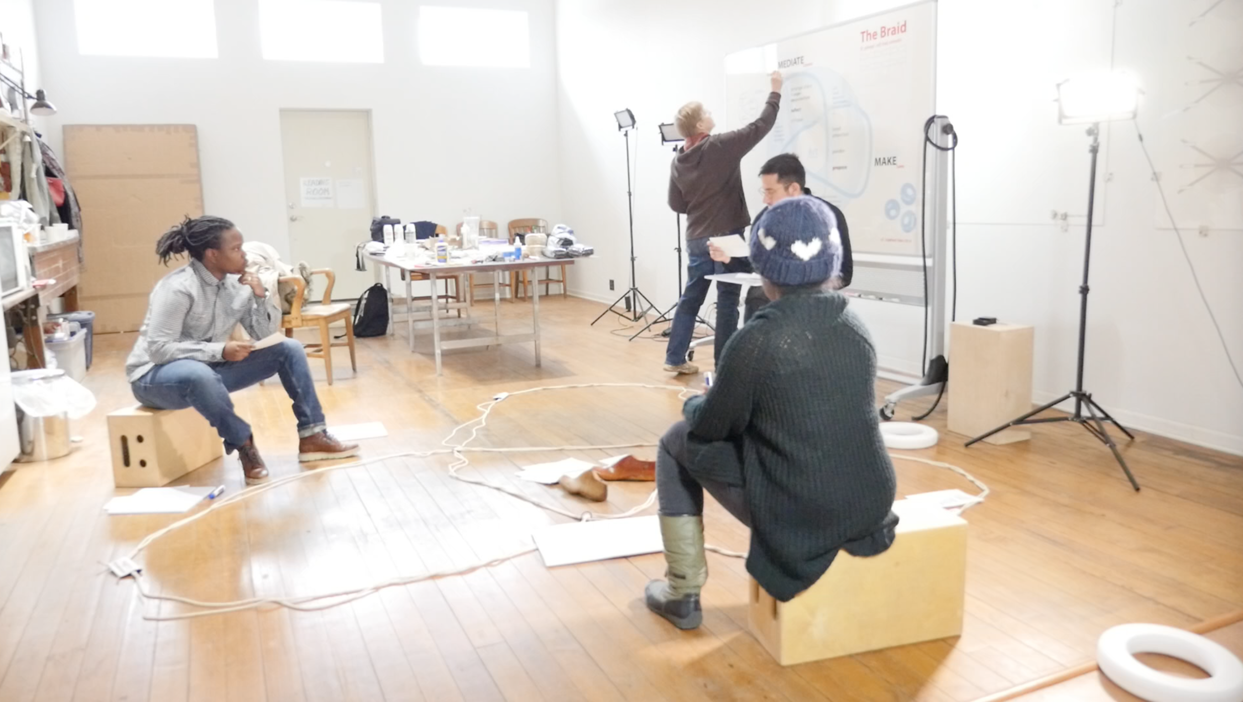 Most participants in this project engaged The Braid whiteboard, exploring their own modes of working while taking cues from the categories it displays. The Braid diagram emerged earlier this year from my ongoing conversations with artists about their practices.